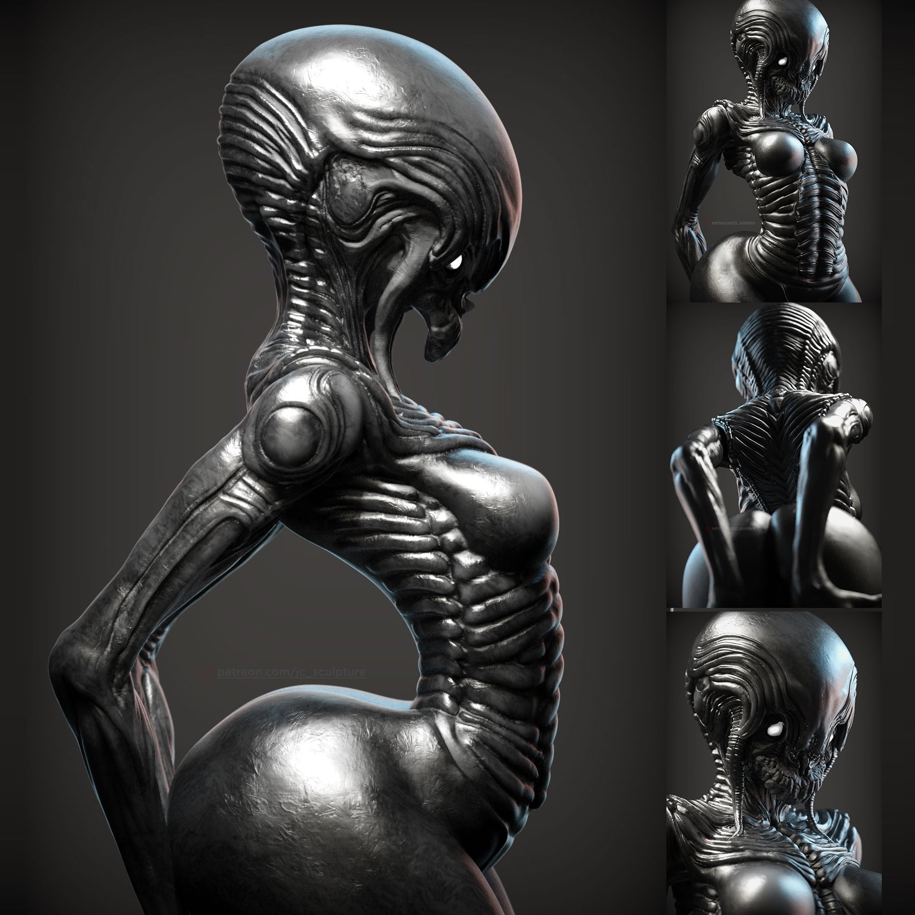 Inspired by the design legacy of HR Giger, sensual curves on a voluptuous body, this piece evokes sci-fi motives, body horror and the macabre. It is sure to stand out in your collection!